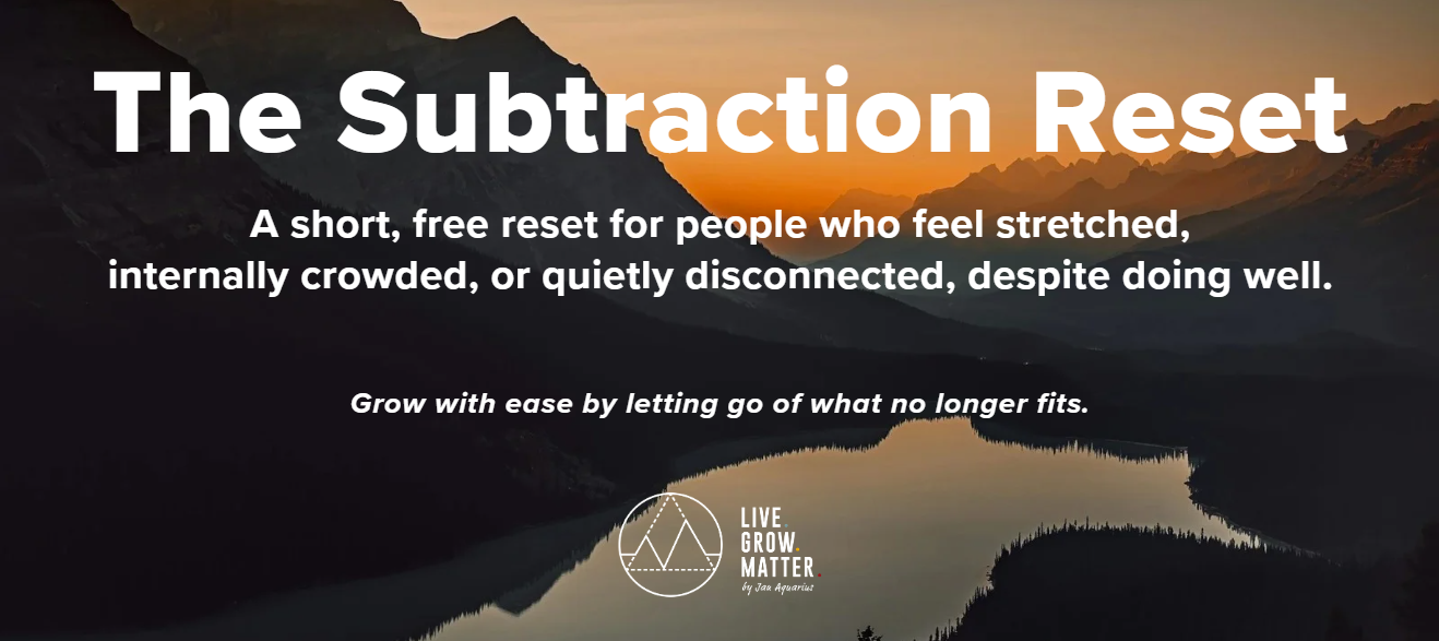 The Subtraction Reset invites you into a different kind of change, one rooted in listening, connection, and intentional choice. Not to fix yourself but to become more of who you already are.